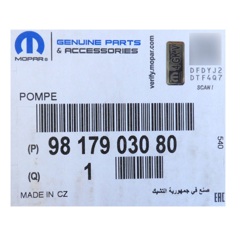Bomba inyectora de alta presión diésel original PSA GROUPE / MOPAR, desarrollada para motores 1.5 BlueHDi (DV5). Este componente es fundamental para el sistema de inyección common rail, ya que garantiza la presión exacta y constante del combustible hacia los inyectores, optimizando la combustión, el rendimiento y la eficiencia del motor.