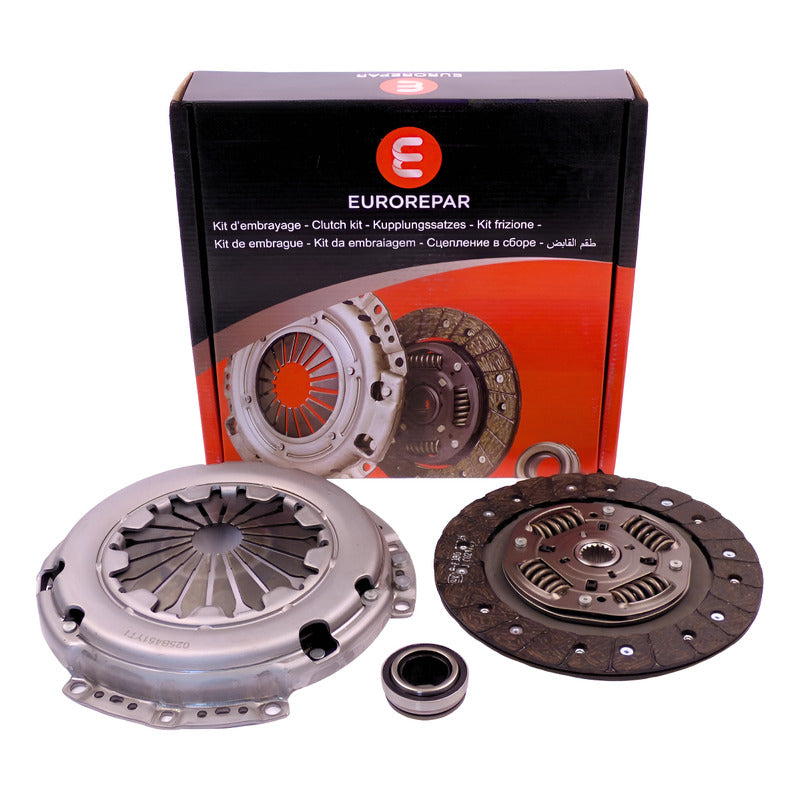 Kit de embrague Eurorepar de 3 piezas, diseñado para motores 1.6 HDI con transmisión mecánica de 5 marchas (CVM5). Este conjunto monodisco ofrece un acople suave y preciso, transmisión de potencia eficiente y un funcionamiento confiable en uso diario, ideal para mantenciones completas y reparaciones correctivas.
