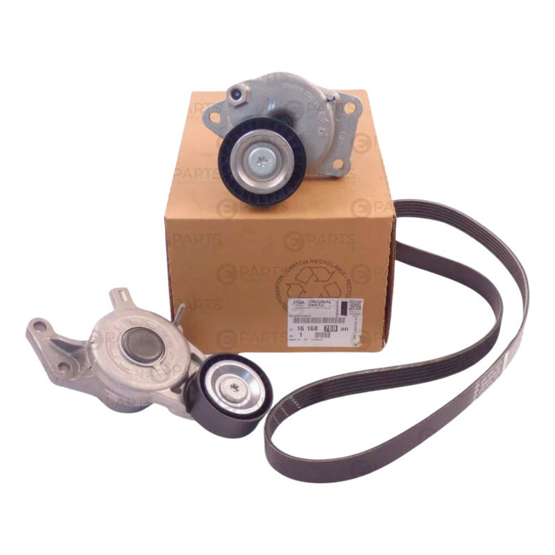 Este kit original PSA Groupe incluye correa 6PK-1073, tensor y rodillo guía, garantizando alineación precisa, tensión estable y máxima durabilidad. Fabricado con caucho sintético y componentes metálicos de alta resistencia, es ideal para mantenimiento preventivo o reemplazo por desgaste en motores de 150 HP y 180 HP.